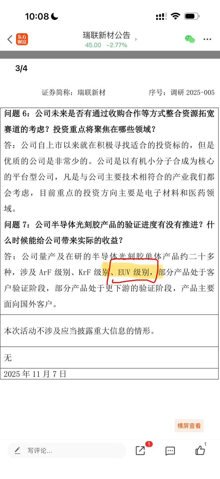 温馨提示: 1.根据《证券法》规定,禁止编造、传播虚假信息或者误导性信息,扰乱证券市场;2.用户在本社区发表的所有资料、言论等仅代表个人观点,与本网站立场无关,不对您构成任何投资建议。用户应基于自己的独立判断,自行决定证券投资并承担相应风险。《东方财富社区管理规定》