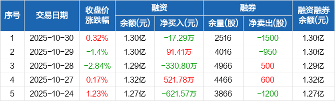 科威尔:融资净偿还17.29万元,融资余额1.3亿元(10-30)