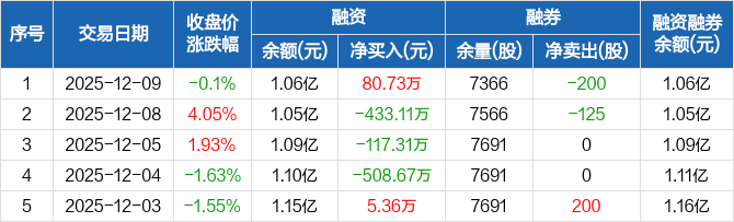科威尔:融资净买入80.73万元,融资余额1.06亿元(12-09)
