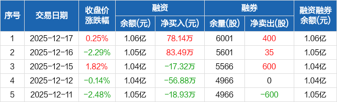 科威尔:融资净买入78.14万元,融资余额1.06亿元(12-17)