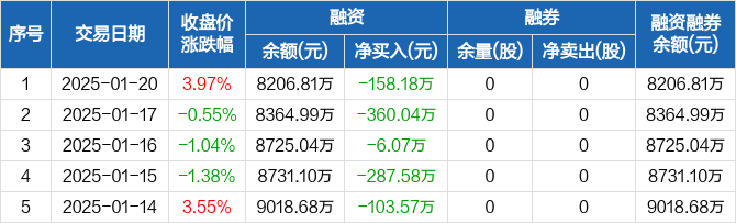 航天南湖:融资余额8206.81万元,创近一年新低(01-20)