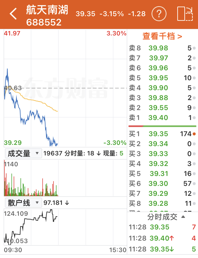 $航天南湖(SH688552)$ 这上方排的卖单39.55-39.88,竟然是空的,看来小散是越来越少,连主力现在都懒得挂单了