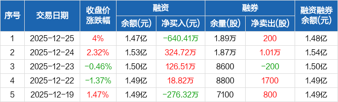航天南湖:融资净偿还640.41万元,融资余额1.47亿元(12-25)