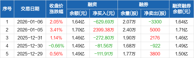 航天南湖:融资净偿还629.69万元,融资余额1.64亿元(01-06)