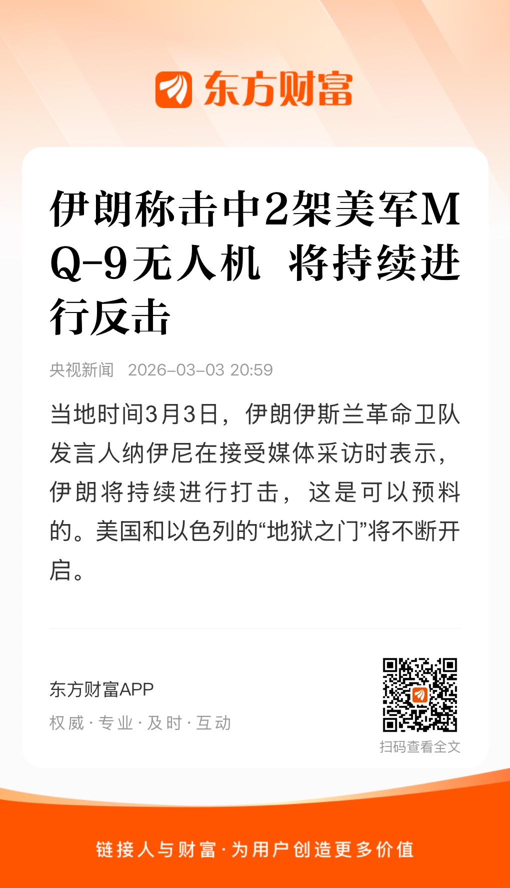 当地时间3月3日,伊朗伊斯兰革命卫队发言人纳伊尼在接受媒体采访时表示,伊朗将持续进行打击,这是可以预料的。美国和以色列的“地狱之门”将不断开启。