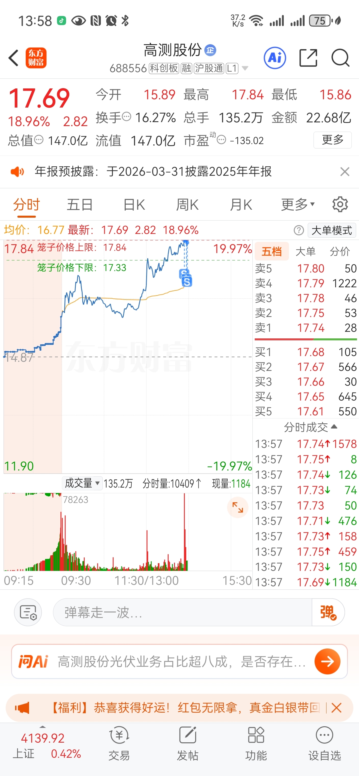 $高测股份(SH688556)$