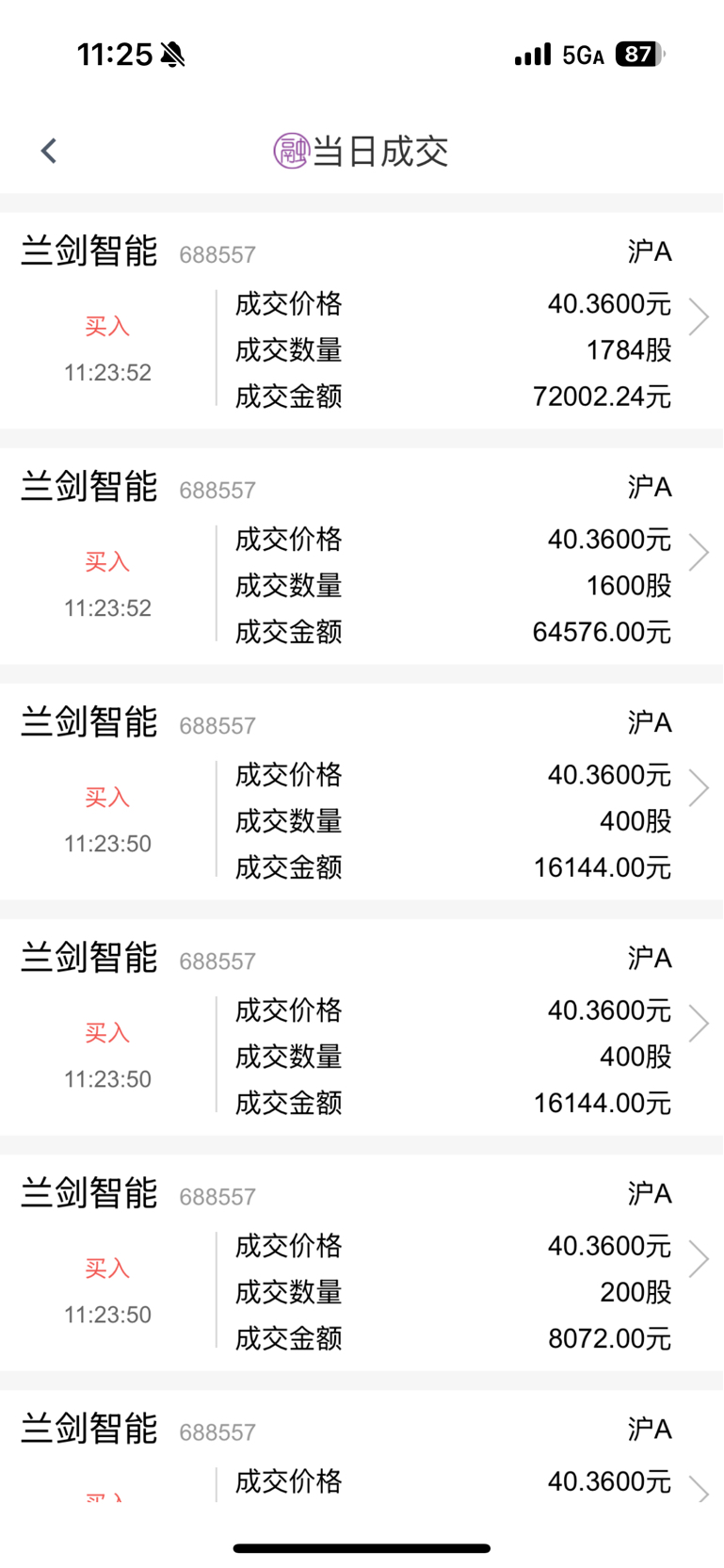 $兰剑智能(SH688557)$ 今日100手买完收工
