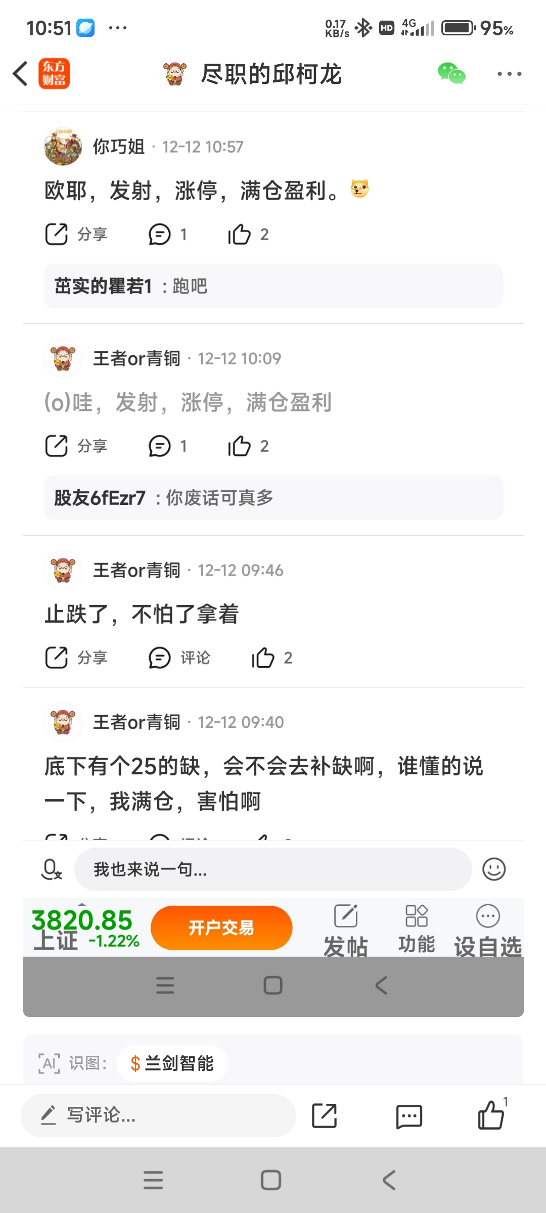 $兰剑智能(SH688557)$ 自己满仓亏钱还指手画脚指导别人炒股?纯韭菜?