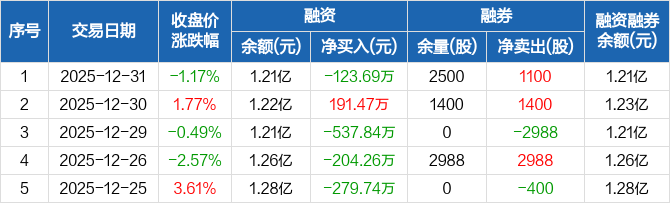 兰剑智能:融资净偿还123.69万元,融资余额1.21亿元(12-31)