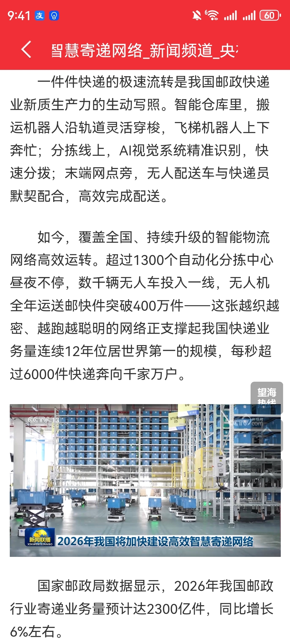 智能仓储上新闻联播了,2026年加快建设智慧寄递网络