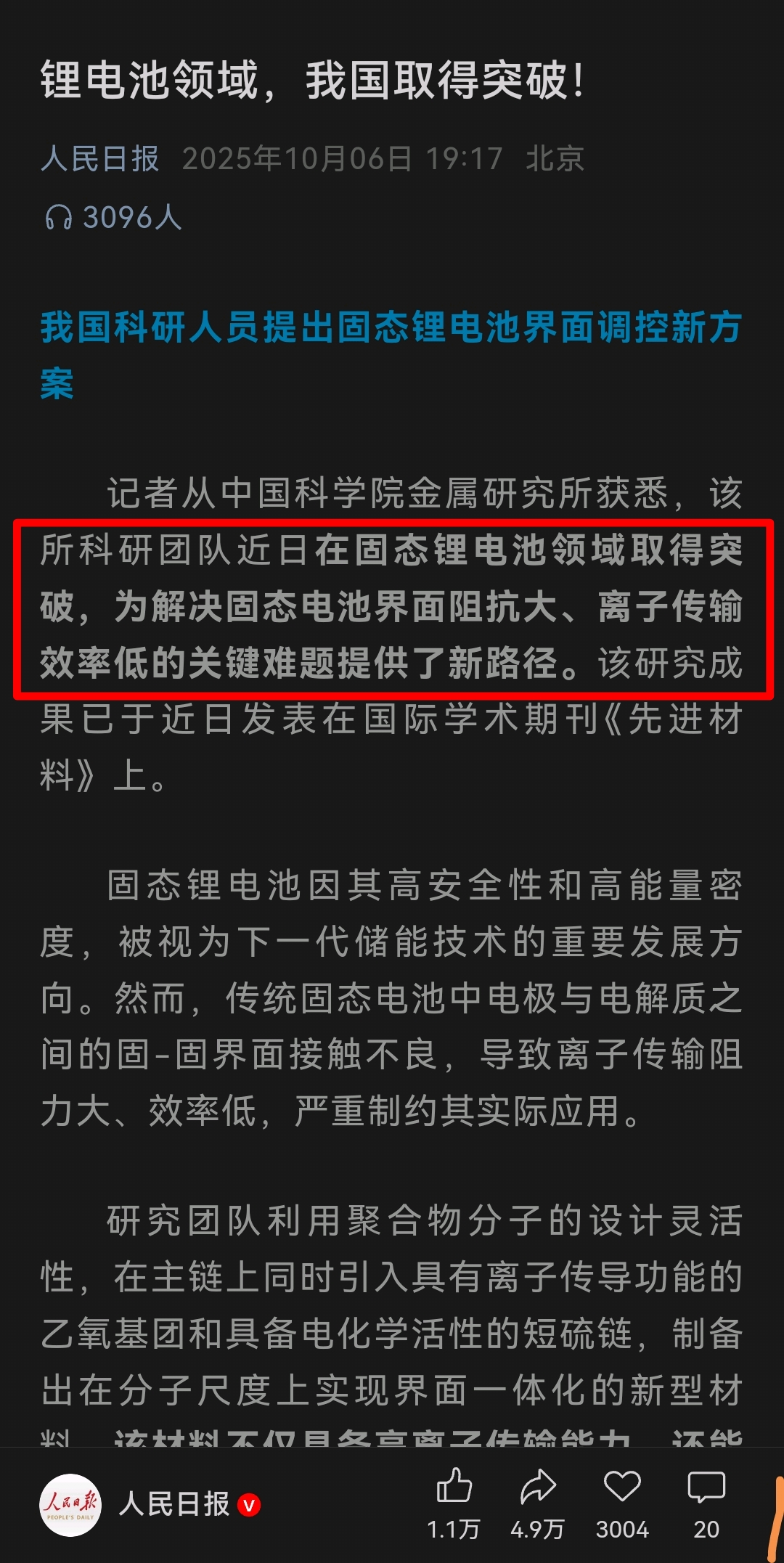 人民日报都开始站队固态锂电池,节后固态会不会有一波行情?