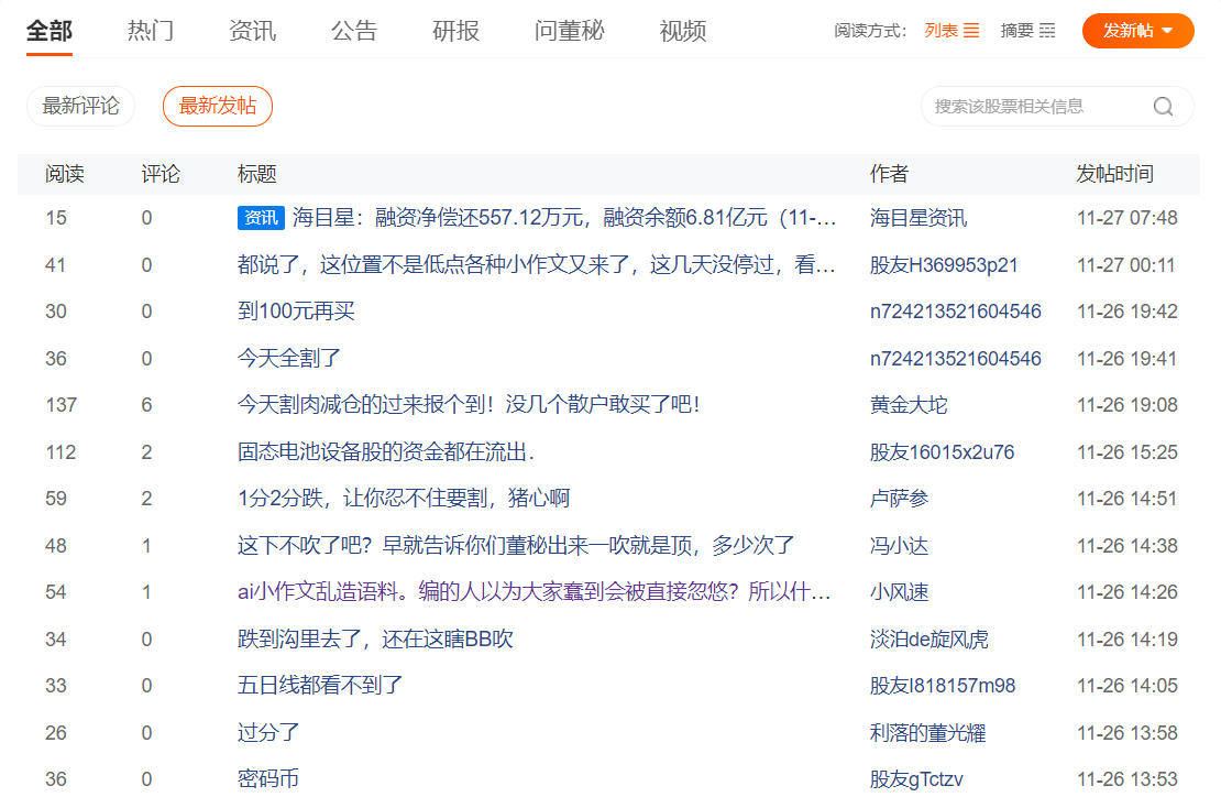 温馨提示: 1.根据《证券法》规定,禁止编造、传播虚假信息或者误导性信息,扰乱证券市场;2.用户在本社区发表的所有资料、言论等仅代表个人观点,与本网站立场无关,不对您构成任何投资建议。用户应基于自己的独立判断,自行决定证券投资并承担相应风险。《东方财富社区管理规定》