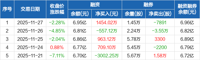 海目星:融资净买入1454.02万元,融资余额6.95亿元(11-27)