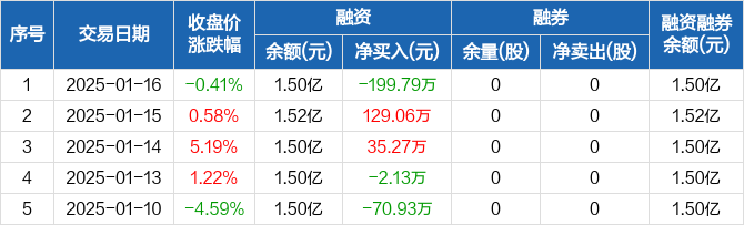 明冠新材:融资净偿还199.79万元,融资余额1.5亿元(01-16)