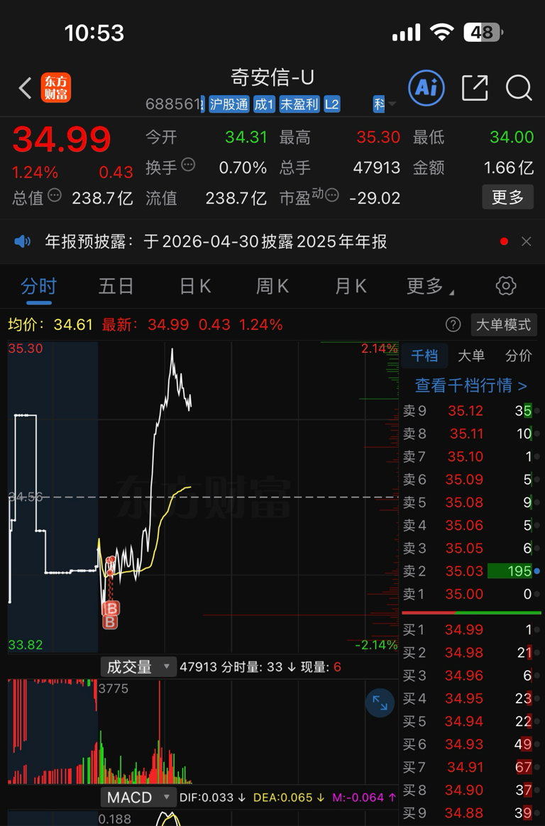 $奇安信-U(SH688561)$ 拉起来就还在形态内。别跳太狠,我今天T不了。