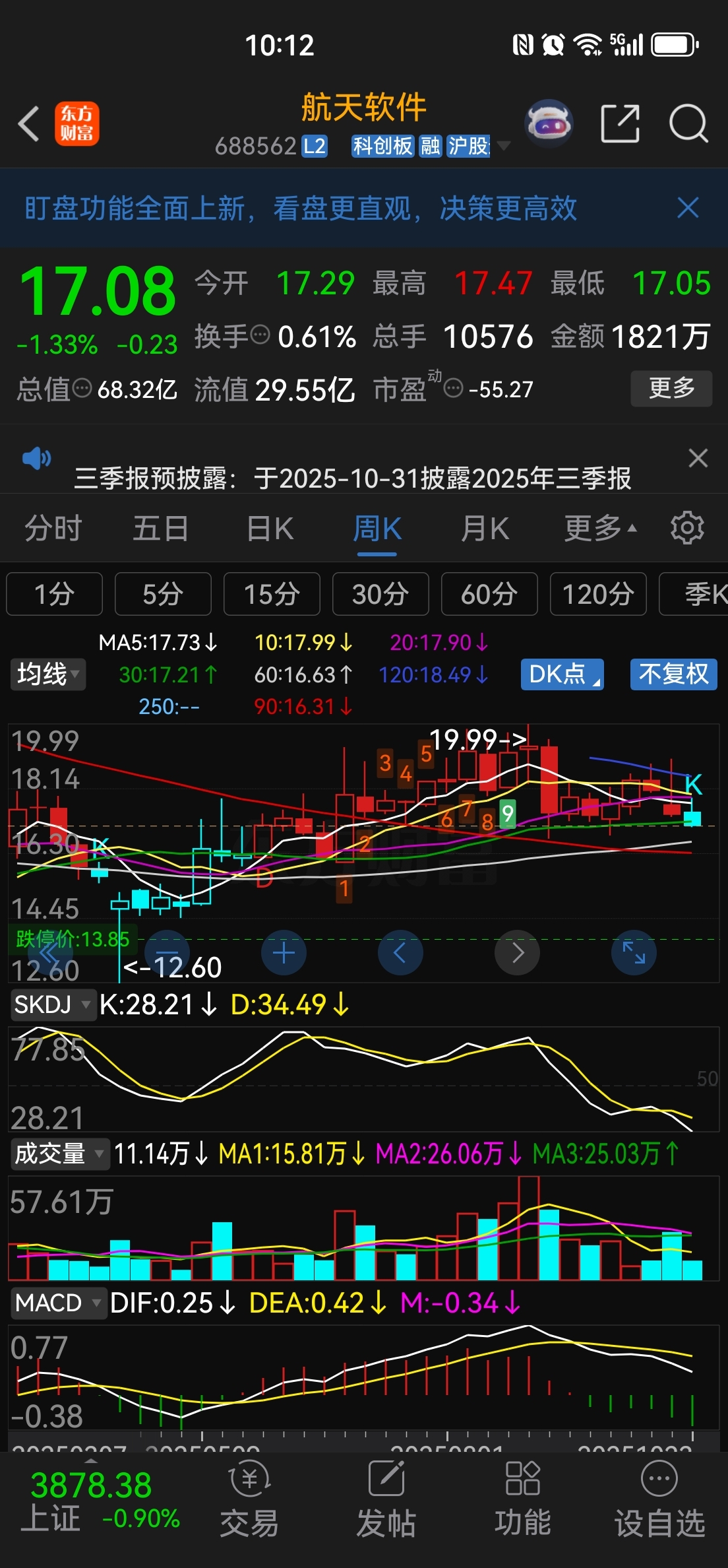 $航天软件(SH688562)$ 向下通道已经打开,按趋势三两周难以回头。要改变也只有看三季报是否有转机。否则,15见。
