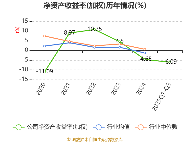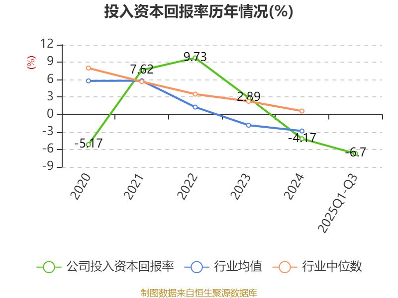 盈利能力方面, 2025年前三季度公司加权平均净资产收益率为-6.09%,同比下降1.5个百分点。公司2025年前三季度投入资本回报率为-6.7%,较上年同期上升0.46个百分点。
