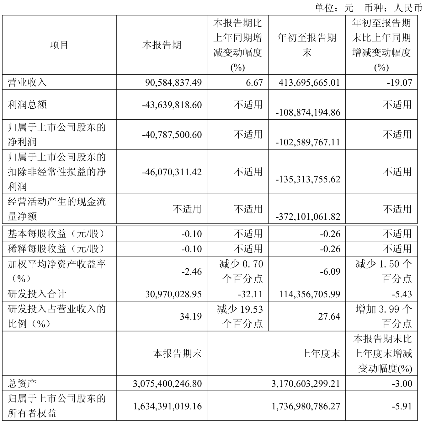 中证智能财讯航天软件(688562)10月31日披露2025年第三季度报告。前三季度公司实现营业总收入4.14亿元,同比下降19.07%;归母净利润亏损1.03亿元,上年同期亏损8135.24万元;扣非净利润亏损1.35亿元,上年同期亏损1.07亿元;经营活动产生的现金流量净额为-3.72亿元,上年同期为-4.43亿元;报告期内,航天软件基本每股收益为-0.26元,加权平均净资产收益率为-6.09%。