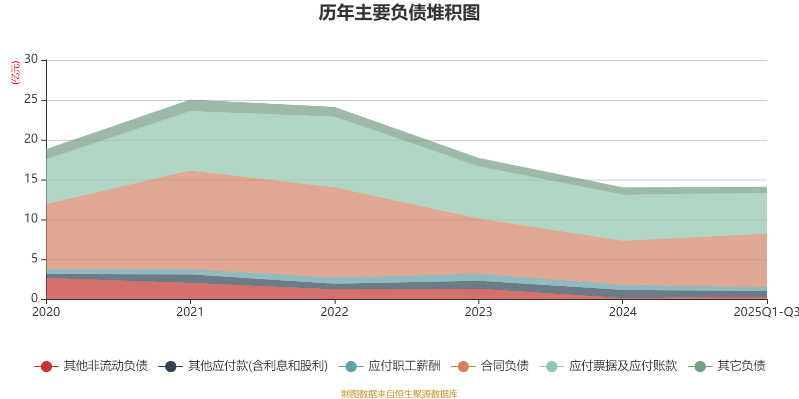 负债重大变化方面,截至2025年三季度末,公司合同负债较上年末增加21.51%,占公司总资产比重上升4.4个百分点;应付票据及应付账款较上年末减少12.05%,占公司总资产比重下降1.7个百分点;其他应付款(含利息和股利)较上年末减少28.79%,占公司总资产比重下降0.84个百分点;其他非流动负债较上年末增加84.76%,占公司总资产比重上升0.46个百分点。
