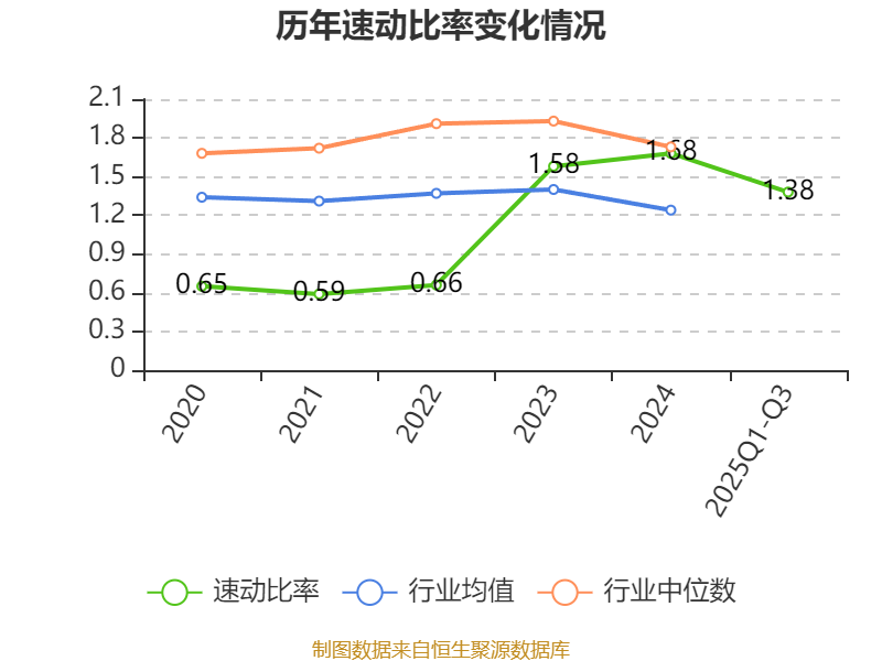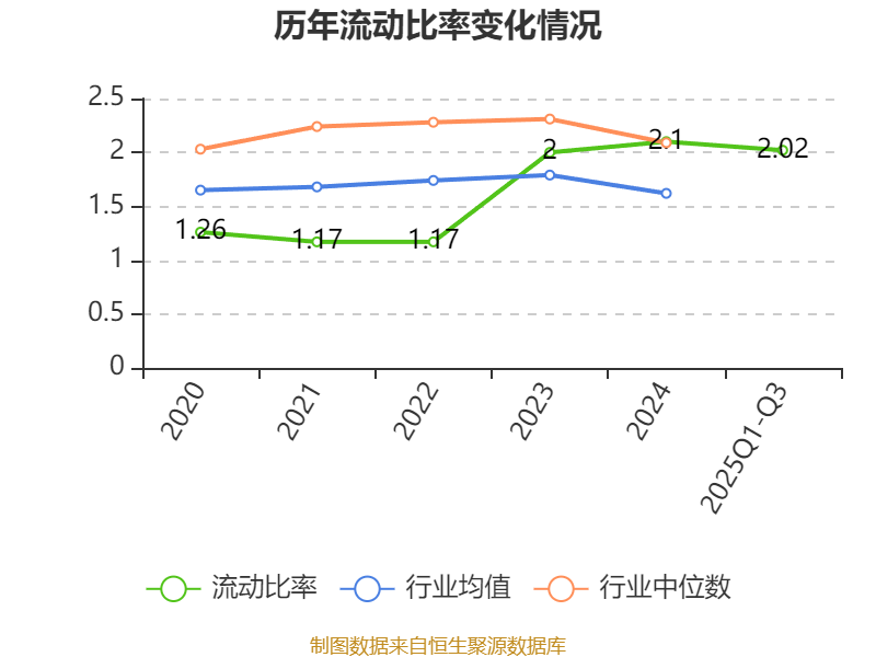 2025年前三季度,公司流动比率为2.02,速动比率为1.38。