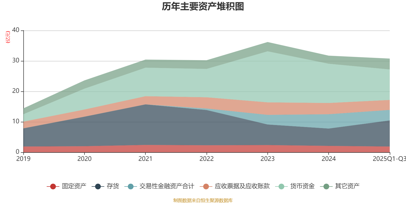 资产重大变化方面,截至2025年三季度末,公司存货较上年末增加50.68%,占公司总资产比重上升9.92个百分点;货币资金较上年末减少22.37%,占公司总资产比重下降8.12个百分点;交易性金融资产合计较上年末减少26.54%,占公司总资产比重下降3.6个百分点;在建工程合计较上年末增加1357.67%,占公司总资产比重上升1.3个百分点。
