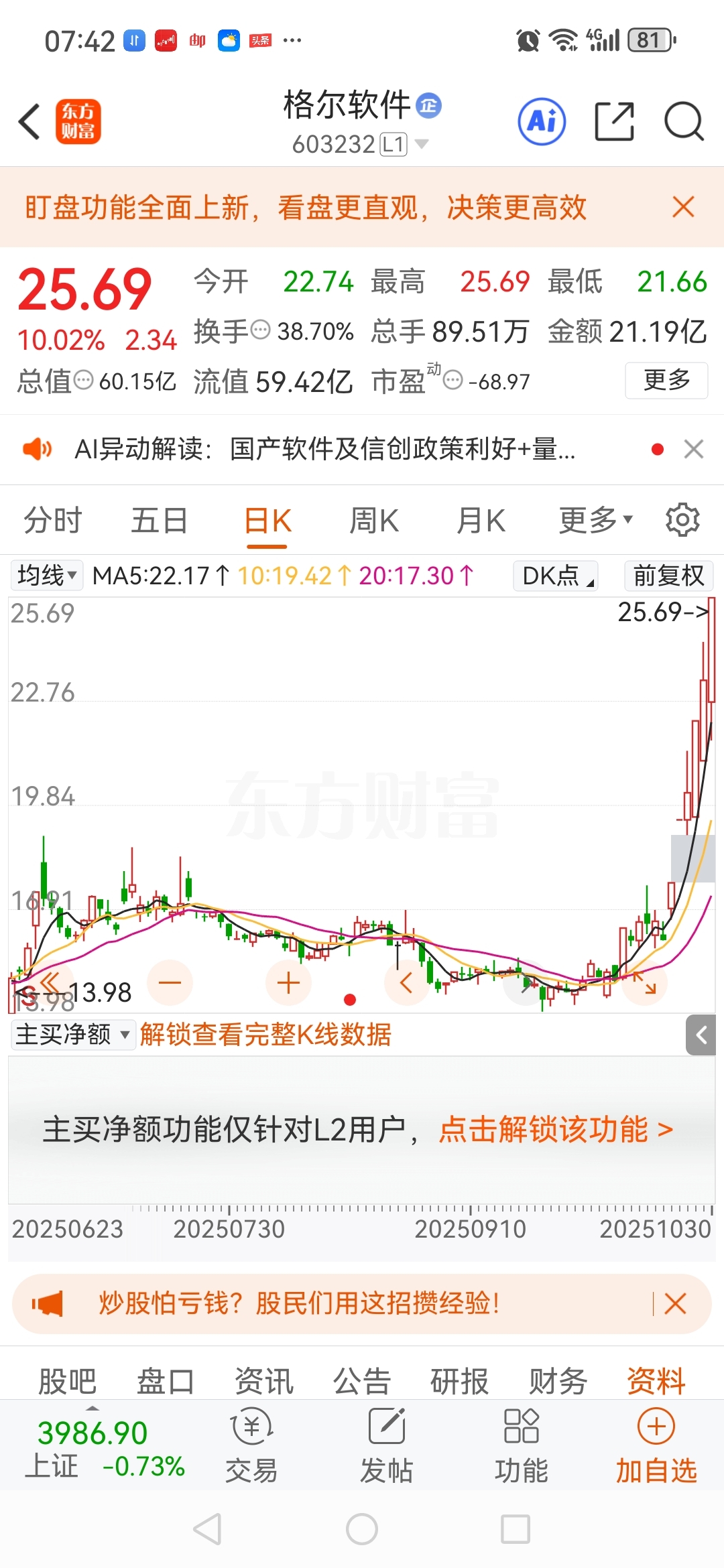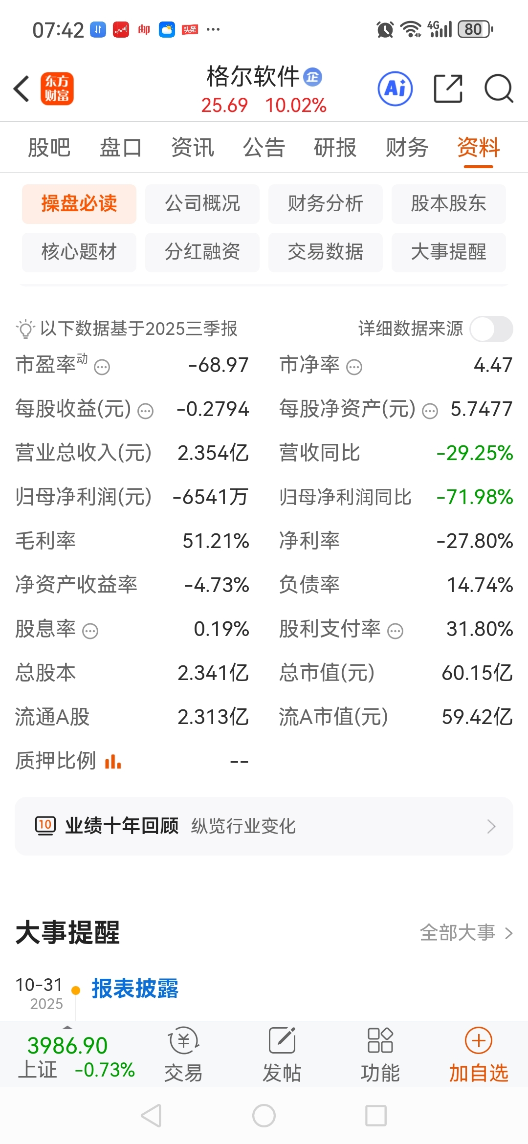 格尔软件巨亏,创新高。