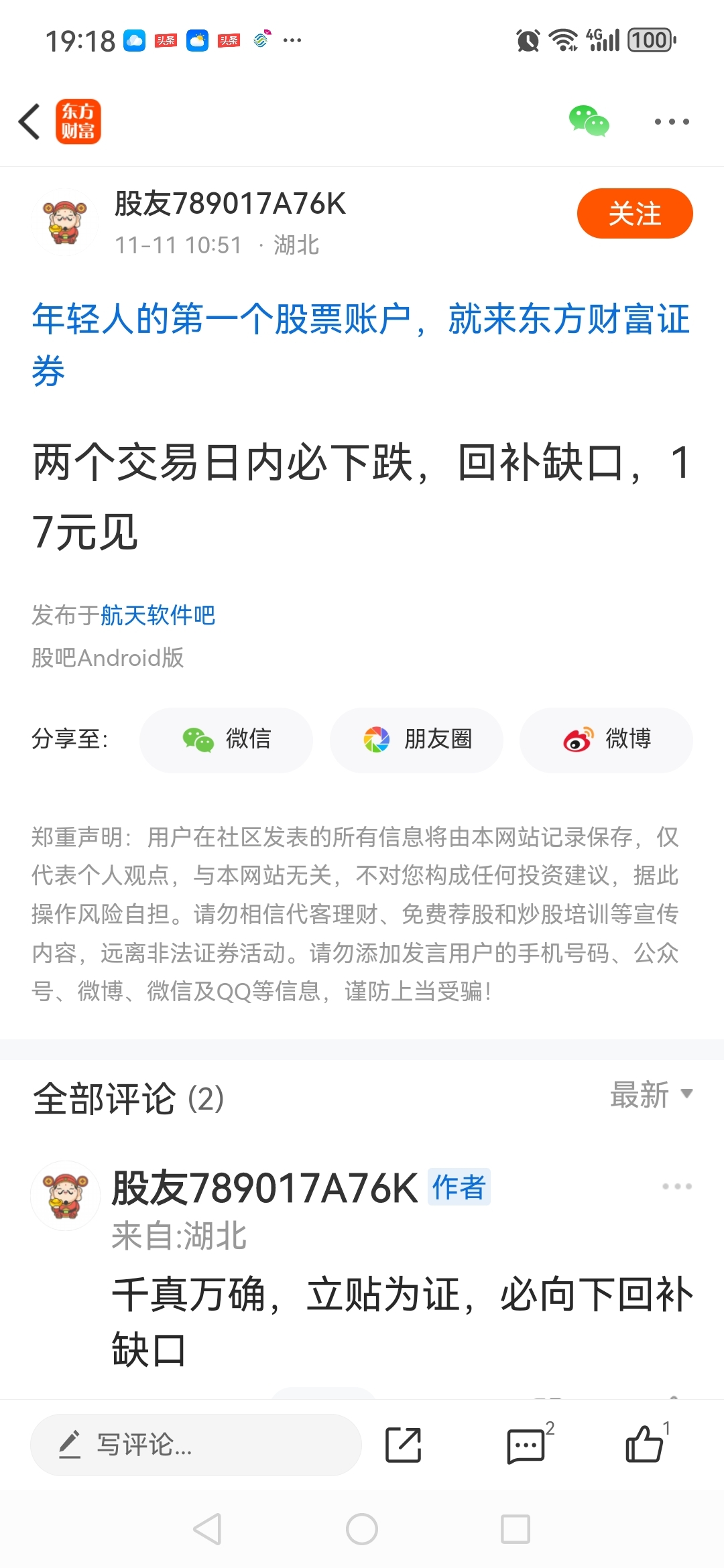 温馨提示: 1.根据《证券法》规定,禁止编造、传播虚假信息或者误导性信息,扰乱证券市场;2.用户在本社区发表的所有资料、言论等仅代表个人观点,与本网站立场无关,不对您构成任何投资建议。用户应基于自己的独立判断,自行决定证券投资并承担相应风险。《东方财富社区管理规定》