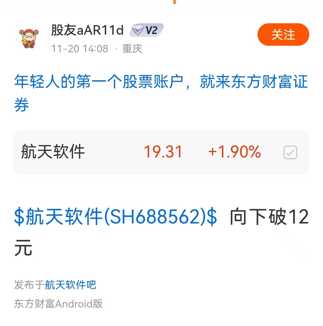 $航天软件(SH688562)$ 这狗.天天看空,不看好还天天呆在这里,识相点滚开吧,前几天还说向下破12元,他不亏谁亏?