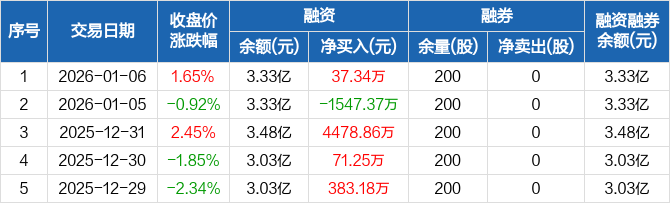 航天软件:融资净买入37.34万元,融资余额3.33亿元(01-06)