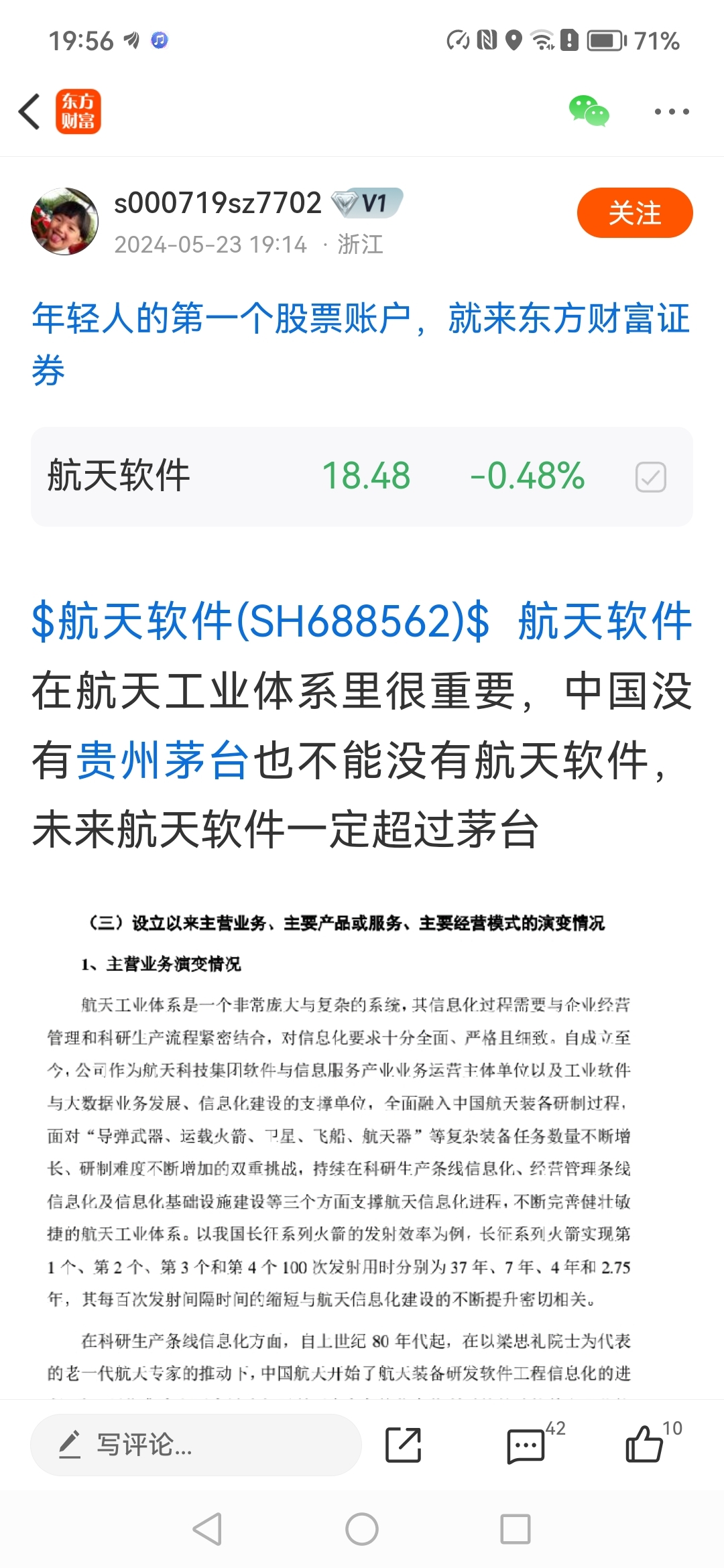 $航天软件(SH688562)$ 小浙江预测,未来航天软件一定超过茅台