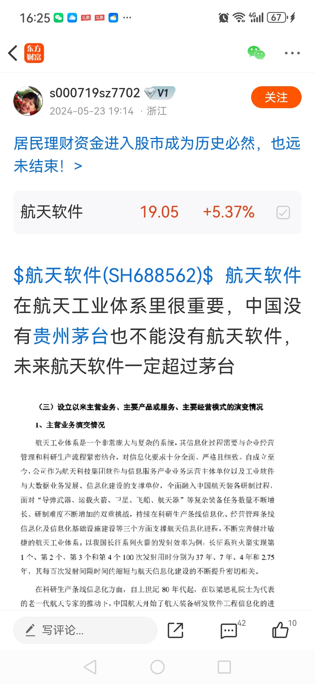 $航天软件(SH688562)$ 小浙江预测,未来航天软件一定超过茅台
