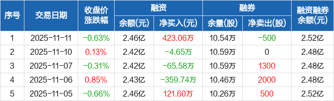 航材股份:融资净买入423.06万元,融资余额2.46亿元(11-11)