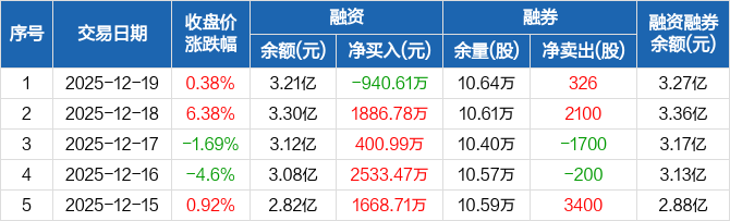 航材股份:融资净偿还940.61万元,融资余额3.21亿元(12-19)