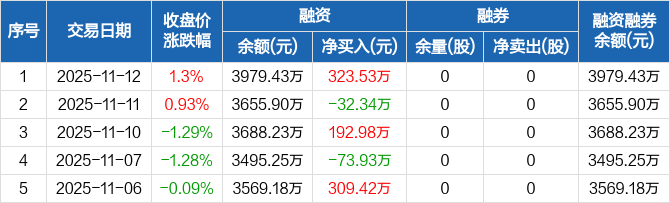 力源科技:融资净买入323.53万元,融资余额3979.43万元(11-12)