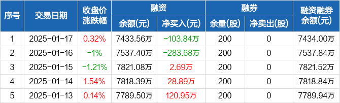吉贝尔:融资净偿还103.84万元,融资余额7433.56万元(01-17)
