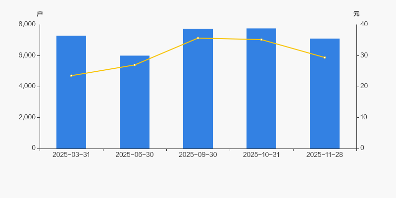 2025年3月31日至今,公司股东户数有所下降,区间跌幅为2.54%。2025年3月31日至2025年11月28日区间股价上涨24.92%。