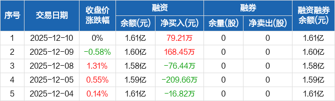 吉贝尔:融资净买入79.21万元,融资余额1.61亿元(12-10)
