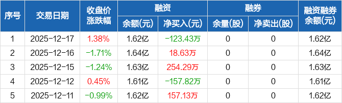 吉贝尔:融资净偿还123.43万元,融资余额1.62亿元(12-17)