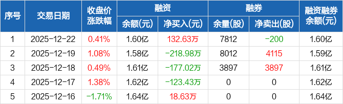 吉贝尔:融资净买入132.63万元,融资余额1.6亿元(12-22)