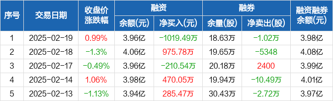 孚能科技:融资净偿还1019.49万元,融资余额3.96亿元(02-19)