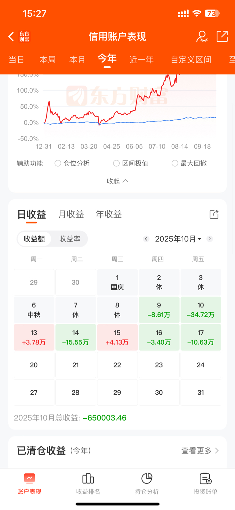 十月份在你身上亏死我了。你千万不要再跌了,我真的快爆仓了。除非我减仓或者你赶紧涨
