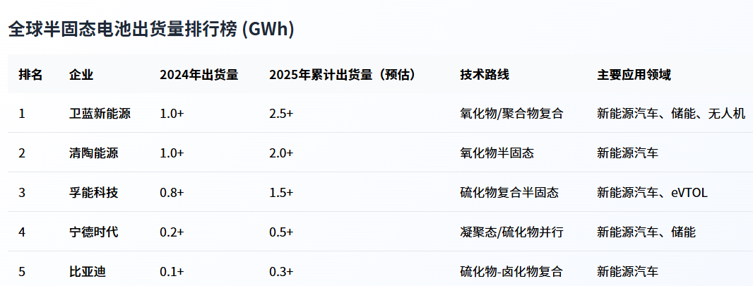 半固态电池出货量预测
