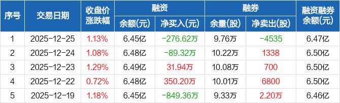 孚能科技:融资净偿还276.62万元,融资余额6.45亿元(12-25)