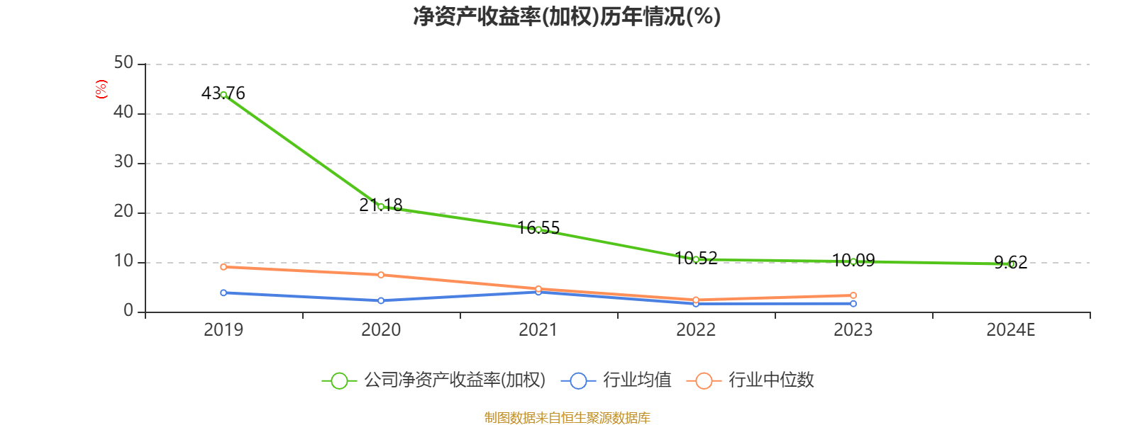 数据显示,2024年公司加权平均净资产收益率为9.62%,较上年同期下降0.47个百分点。