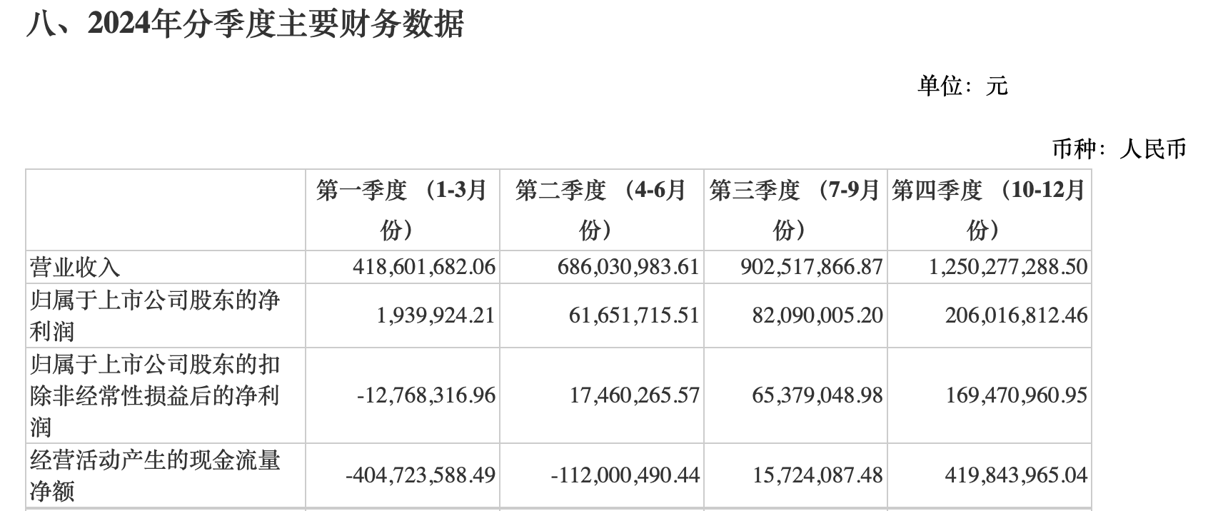 分季度看,2024年中科星图的营收、净利均逐季度增长:第一、二、三、四季度分别实现营业收入4.19亿元、6.86亿元、9.03亿元、12.5亿元,实现归属于上市公司股东的净利润0.02亿元、0.62亿元、0.82亿元、2.06亿元。