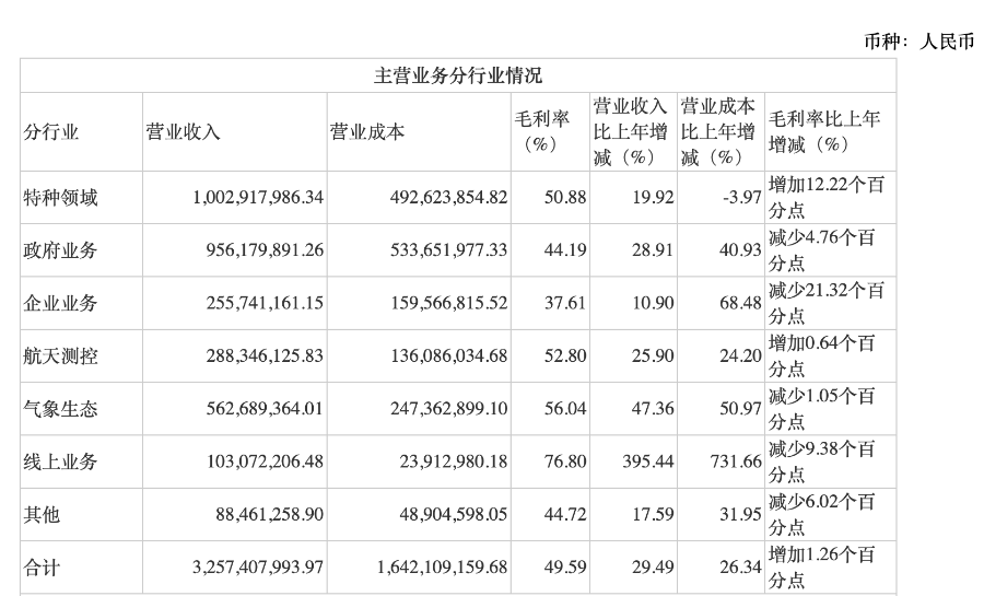 年报显示,中科星图的营收主要来自特种领域、政府业务、企业业务、航天测控、气象生态、线上业务等。