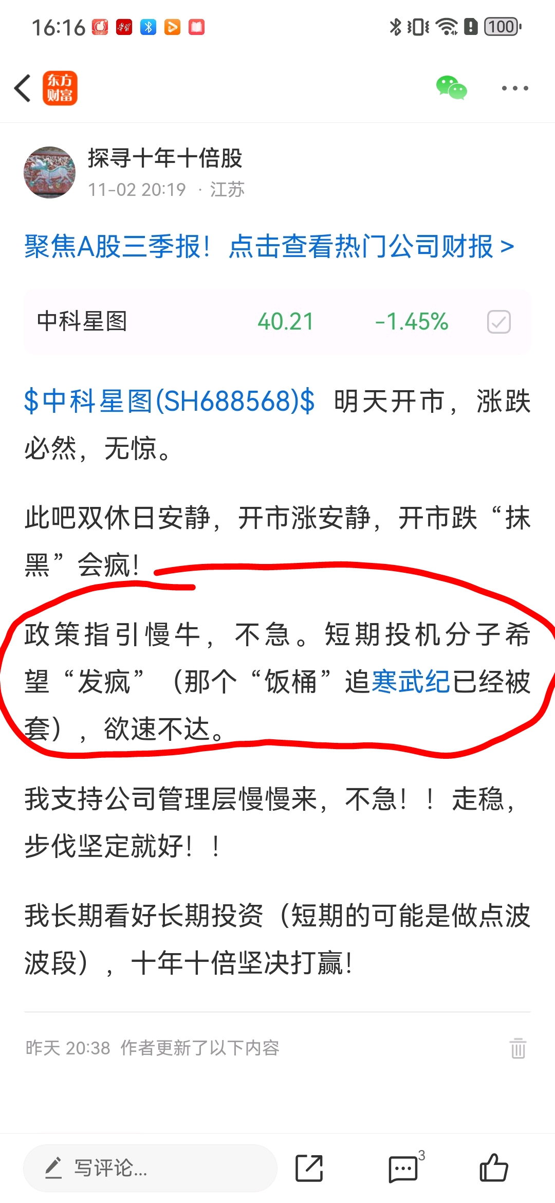 温馨提示: 1.根据《证券法》规定,禁止编造、传播虚假信息或者误导性信息,扰乱证券市场;2.用户在本社区发表的所有资料、言论等仅代表个人观点,与本网站立场无关,不对您构成任何投资建议。用户应基于自己的独立判断,自行决定证券投资并承担相应风险。《东方财富社区管理规定》