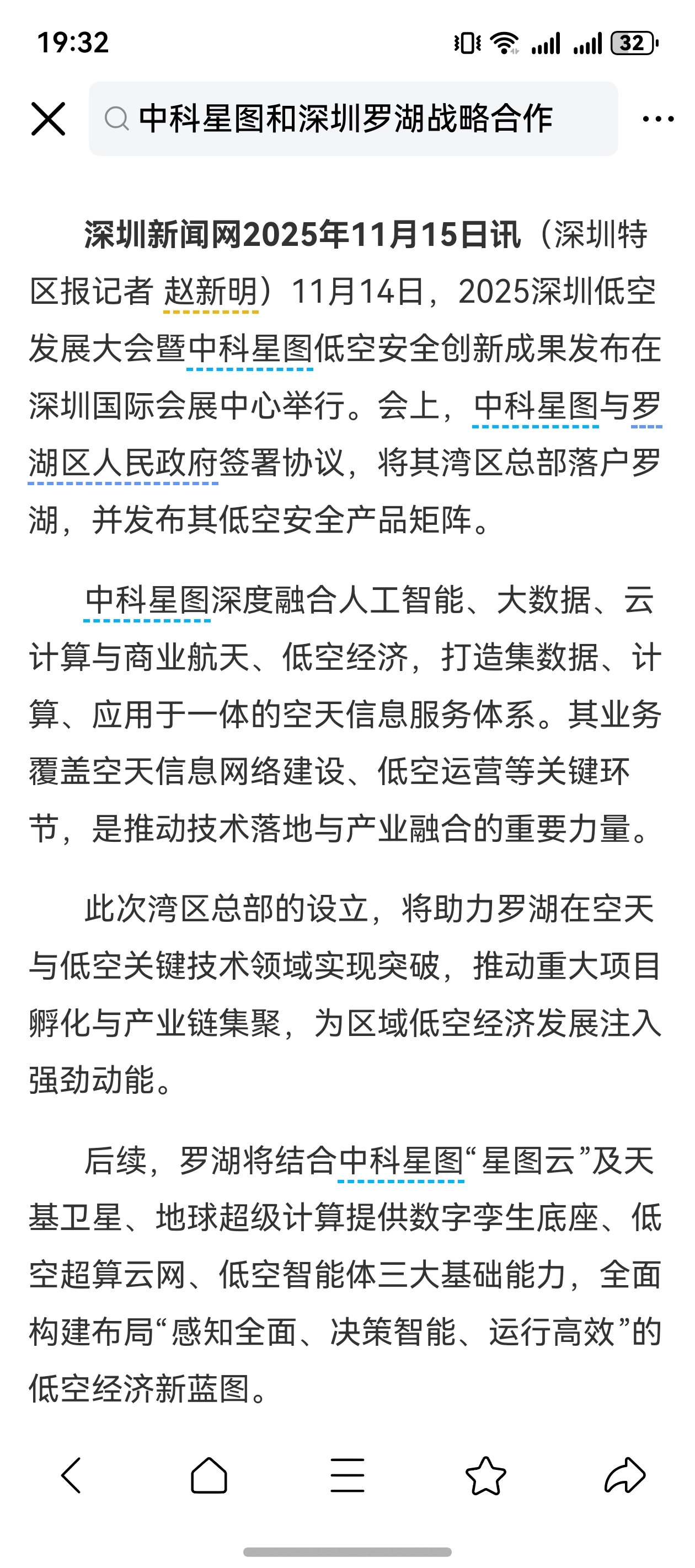 $中科星图(SH688568)$ 静声静音不代表不发声音,如此重大合作事件难道是没有吧友关注吗?既然没有人提醒,我来做吧,几天前有人说大中华最发达经济地区没有中科星图布局身影,近几天的星图布局战略合作指引发给大家,有兴趣的吧友和粉丝们按标题去查具体公开报道。