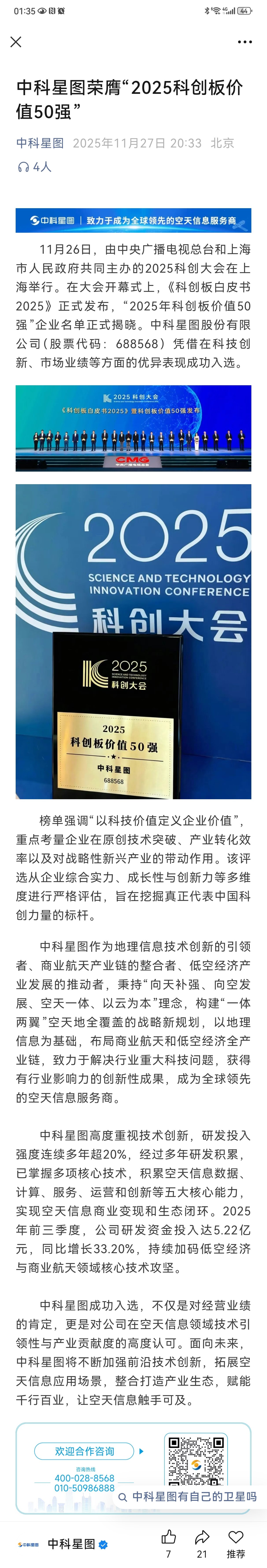 $中科星图(SH688568)$ 中科星图荣膺“2025科创板价值50强”