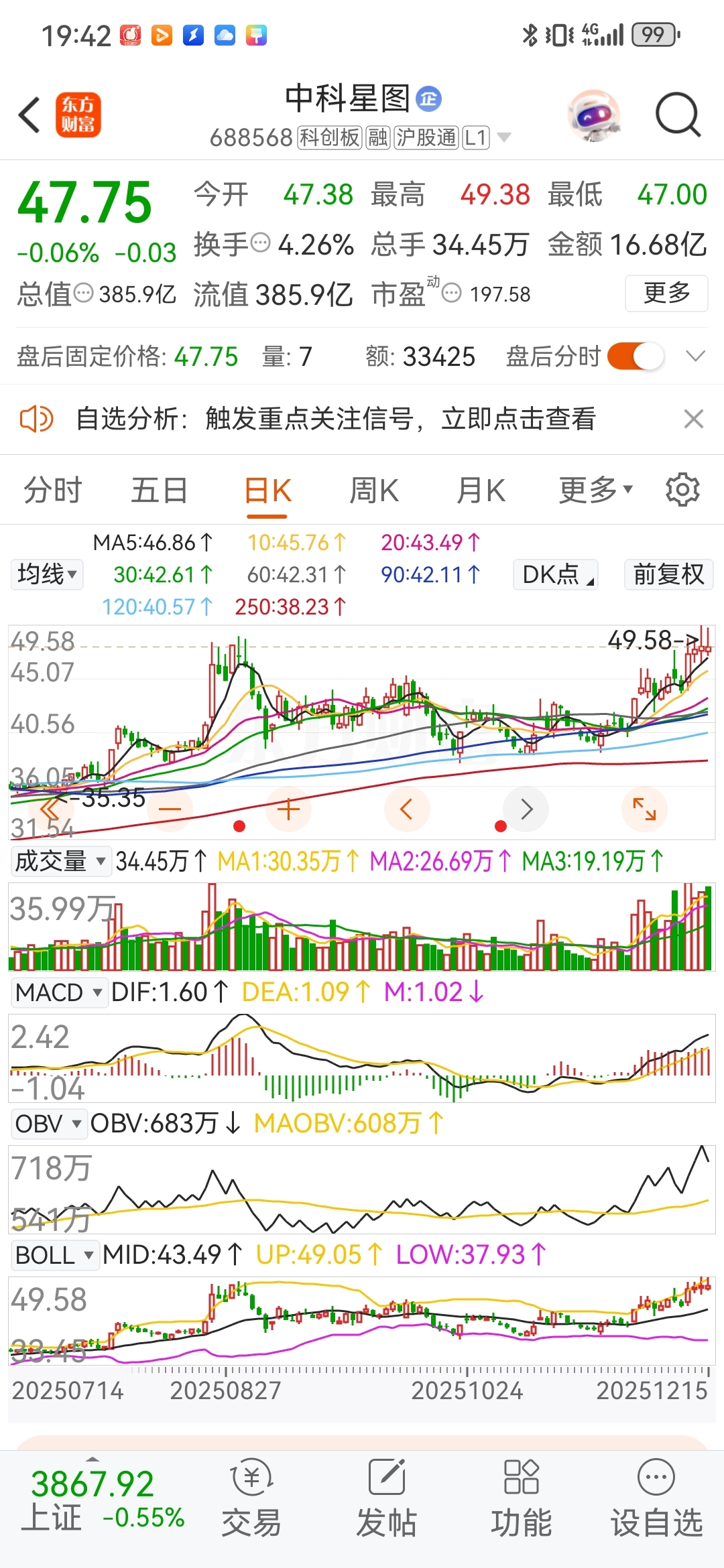 $中科星图(SH688568)$ 慢牛,慢慢来!执行力执行政策最优秀的团队。想投机取巧者快快换股,这只股票磨蹭磨蹭的不急不急不忙,技术指标一进入强势即休息哦